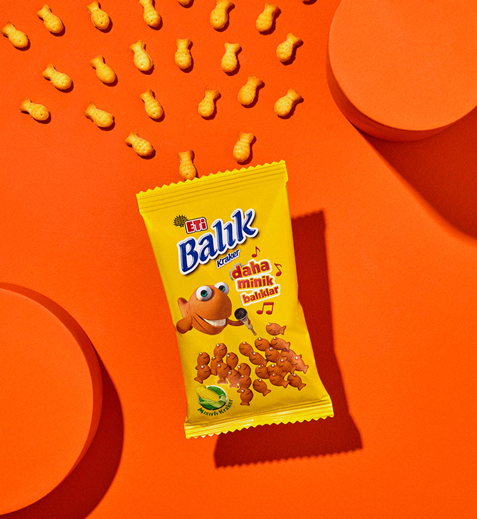 The beloved ETi Balık Kraker is here with ETi Balık Mini Cracker with Corn! Smaller corn-flavored fish for an even more fun snacking experience. ETi Balık Kraker—just the name is enough!