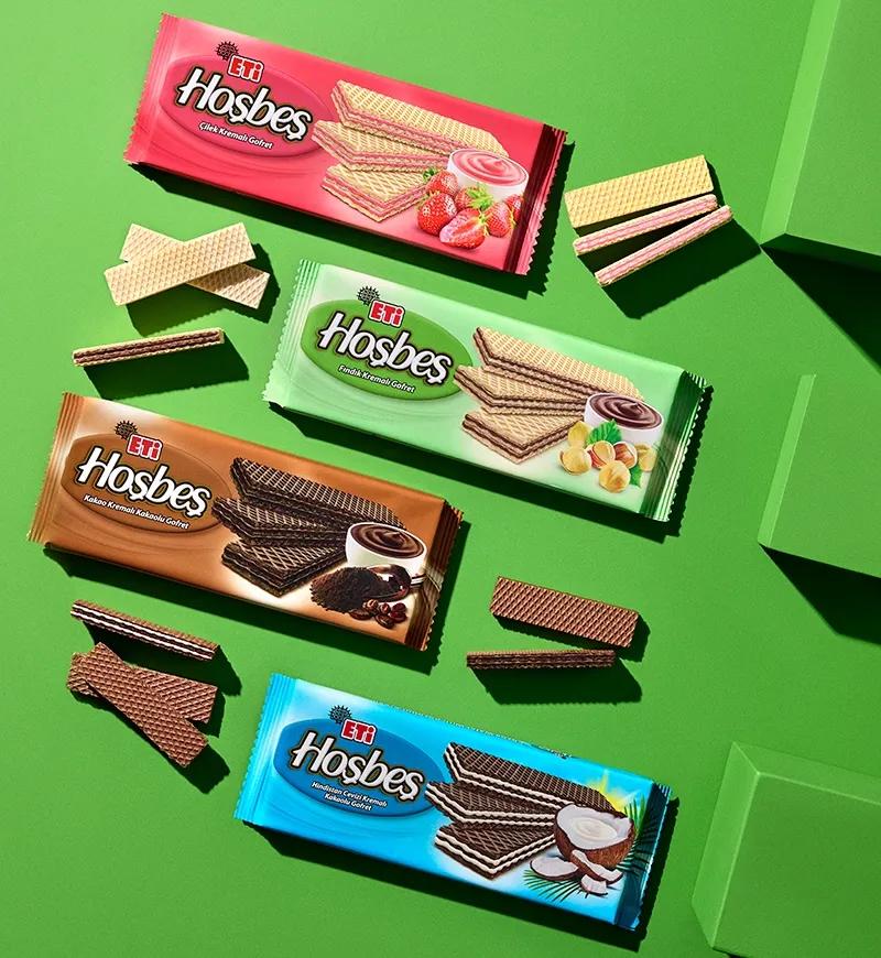Filled with delicious hazelnut cream between delicate layers of wafer... A wafer like no other, that makes you want to eat more with every bite. It melts in your mouth and melts your heart with its taste. ETi Hoşbeş, stop if you can!