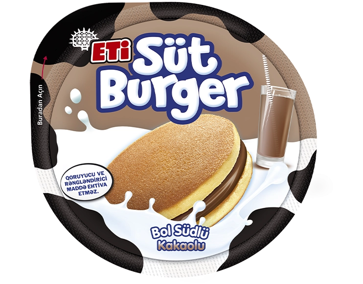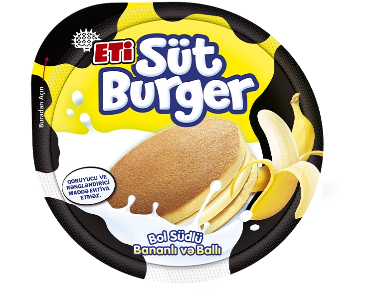 A milk-filled delight from ETi, straight from the fridge! With its soft pancake, delicious milky banana cream, and fun burger shape, it's a favorite for kids and moms!
