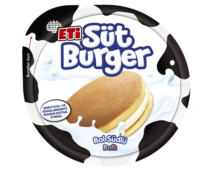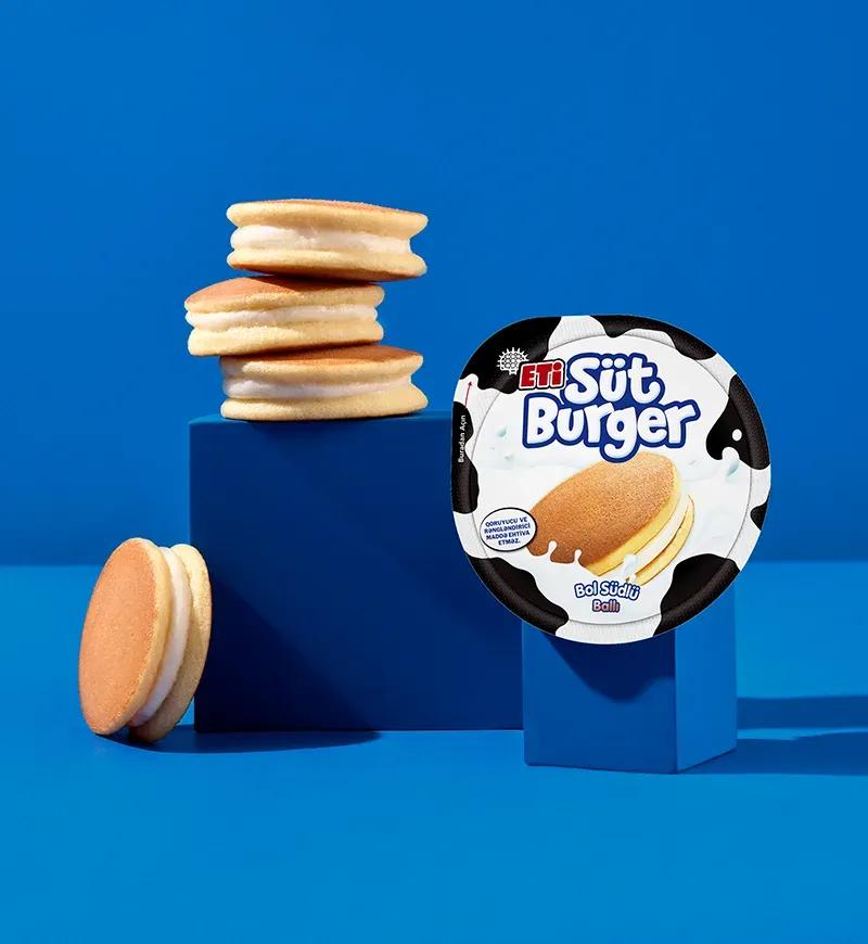 A Milky Treat Straight from the Fridge! A honey-flavored sponge cake, delicious milk cream, and a fun burger shape — loved by kids and moms alike!