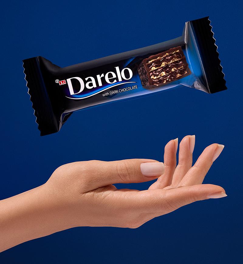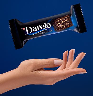 Darelo Dark Chocolate is the chocolate bar with wafer, dedicated to those who prefer dark chocolate. The product brings an intense sensory experience that stimulates the senses and creates pleasure, thanks to the high percentage of cocoa cream, the tender but slightly crunchy layers of wafer and the dark chocolate glaze. Darelo is an innovative, high-quality product that generates a preference for the taste of dark chocolate.