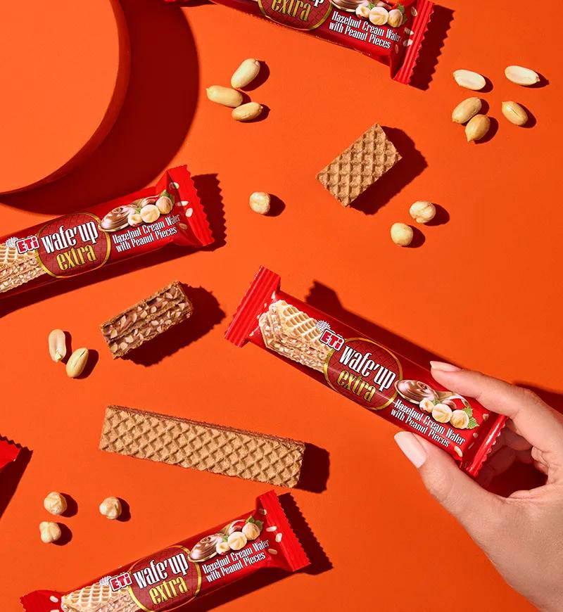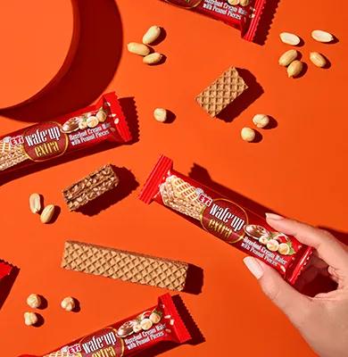 Get ready for a truly indulgent experience with Wafe'Up Extra! Each bite is a power combo of crispy wafer layers, creamy cocoa or hazelnut filling and the satisfying crunch of peanut pieces. It’s not just a wafer.