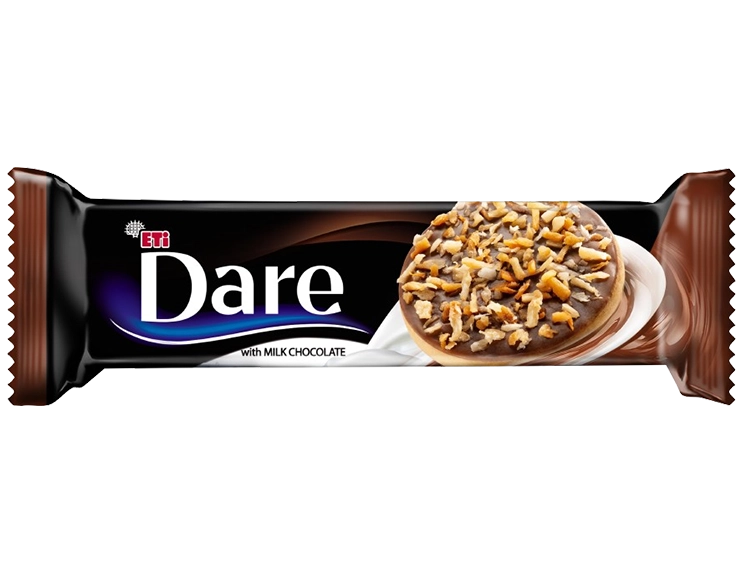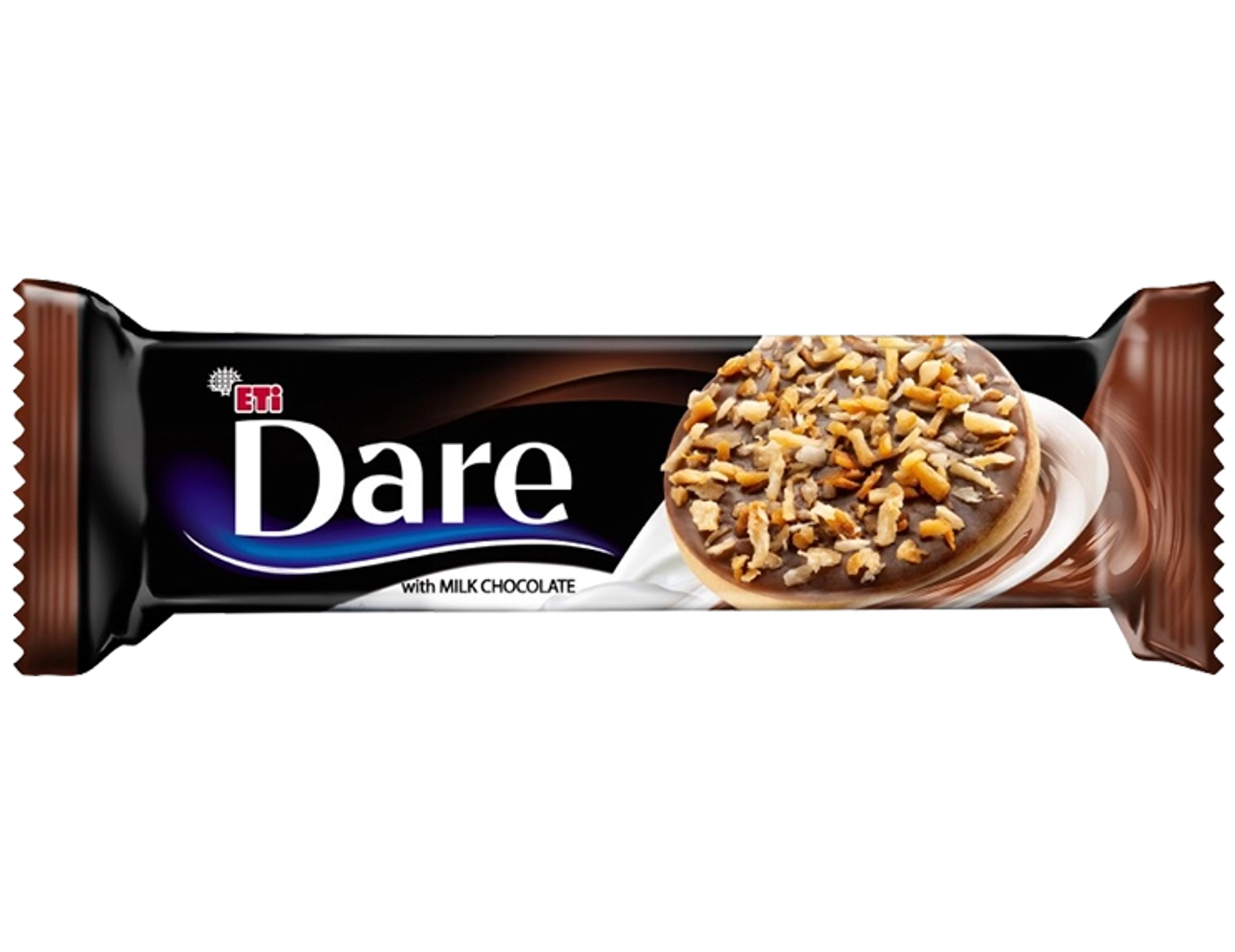 Crispy, thin, chocolate-dipped biscuit with roasted, delicious coconut pieces—grab, pull, twist, bite. With its format that’s easy to hold and perfect for on-the-go, ETi Dare is ready to accompany you during your travels, at school, in the office, in your bag, or whenever and wherever you want.