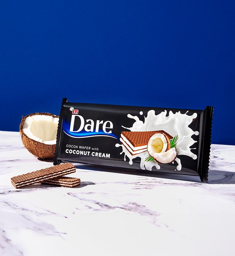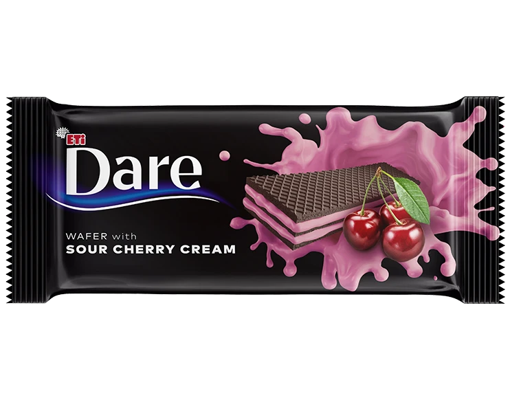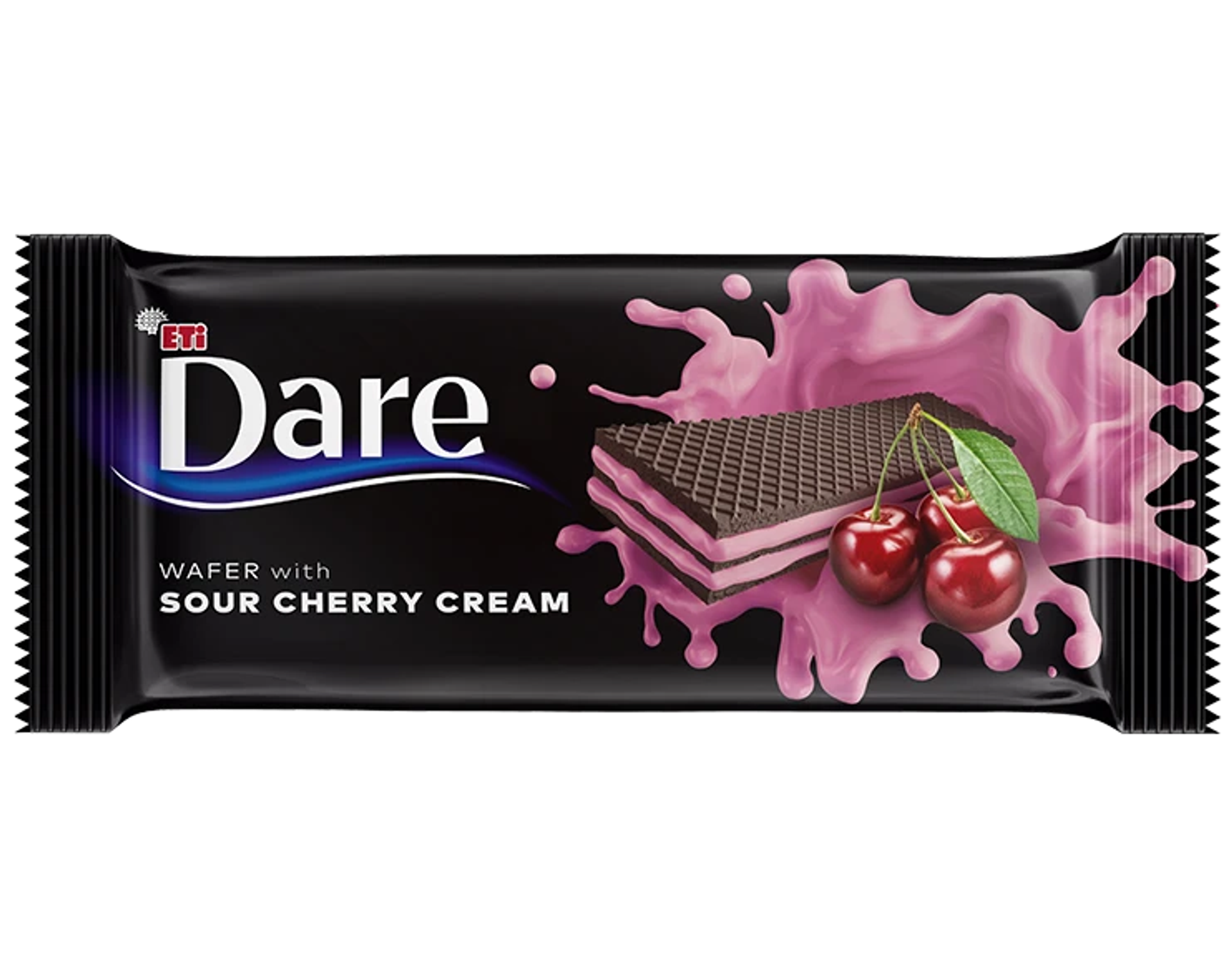 Delicious cocoa Dare wafer layers meet tasty sour cherry cream. Dare Crispy Wafer with Sour Cherry Cream, stop if you can!