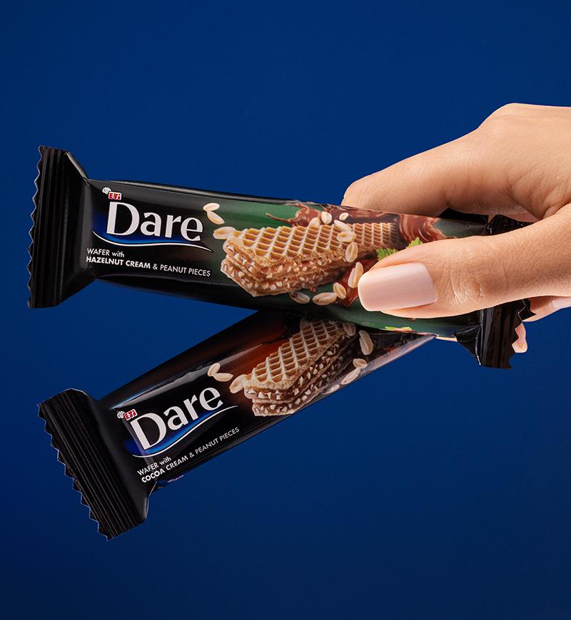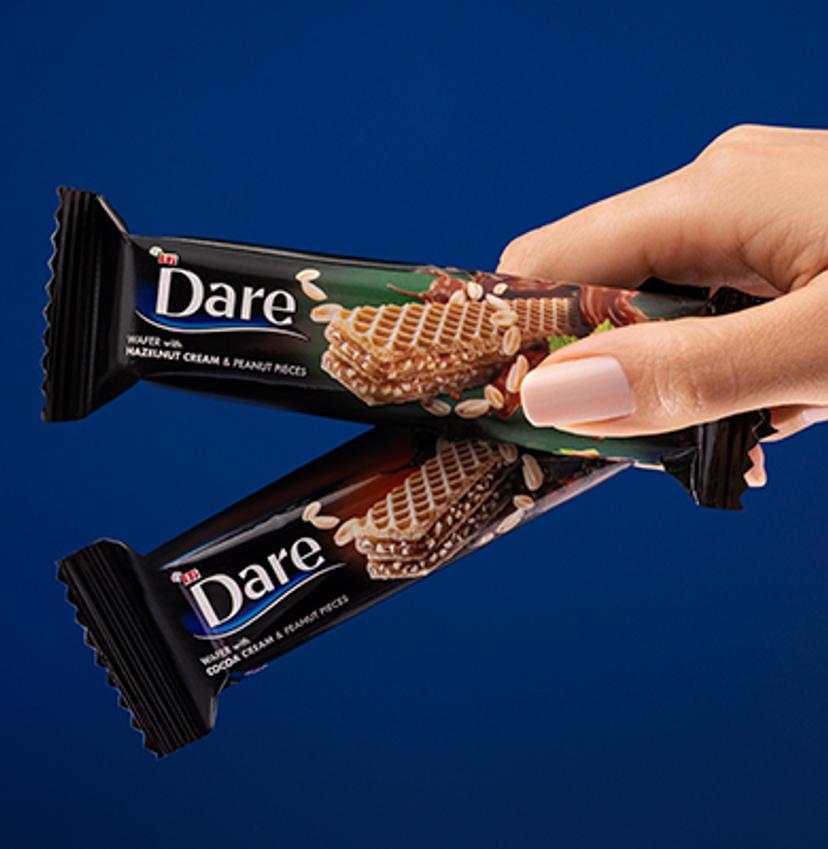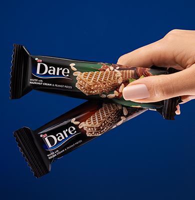 Extra thick. Extra creamy. Extra Dare. Crunchy wafers, rich creams, and peanut pieces come together for the ultimate bold bite.