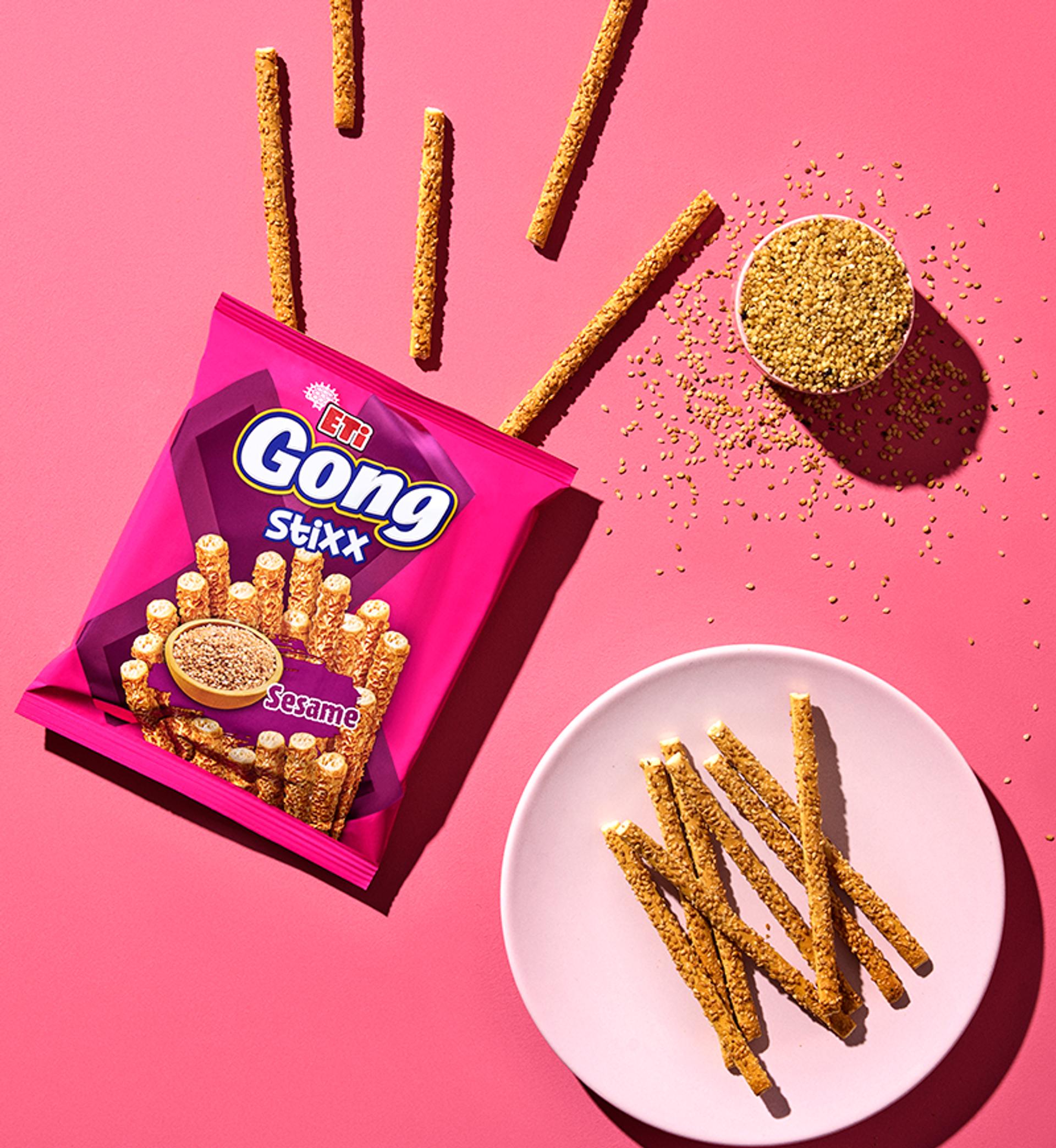 Perfectly crispy and irresistibly crunchy—this is what fun tastes like! ETi Gong Stixx is the ideal snack when you're hungry or need a little break. Come on, don’t stop—enjoy the fun with Gong! Covered with roasted sesame, crispy Gong Sesame Sticks. Crunchy, delicious, and satisfying.