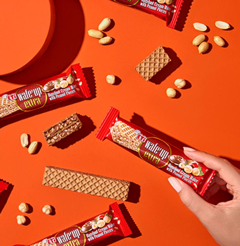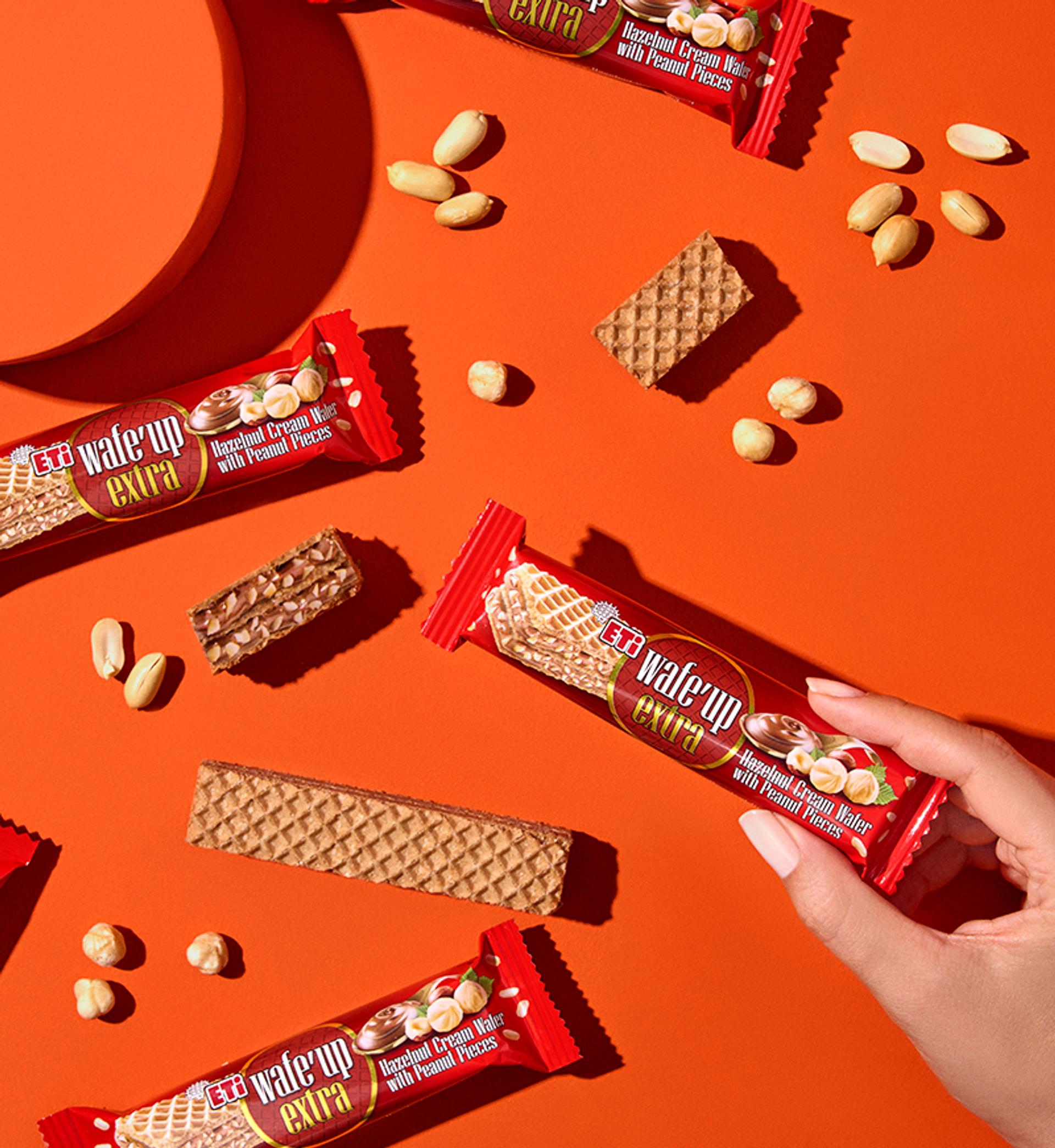 Get ready for a truly indulgent experience with Wafe’Up Extra! Each bite is a power combo of crispy wafer layers, creamy cocoa or hazelnut filling and the satisfying crunch of peanut pieces. It’s not just a wafer.