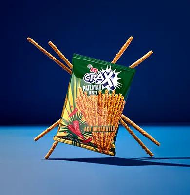 ETİ Crax Explosive Flavor Spicy – a snack that explodes with fun and flavor! With crunchy pieces on top and an intense flavor, snacking is so much more fun. Come on, don’t stop – join the fun with Crax!
