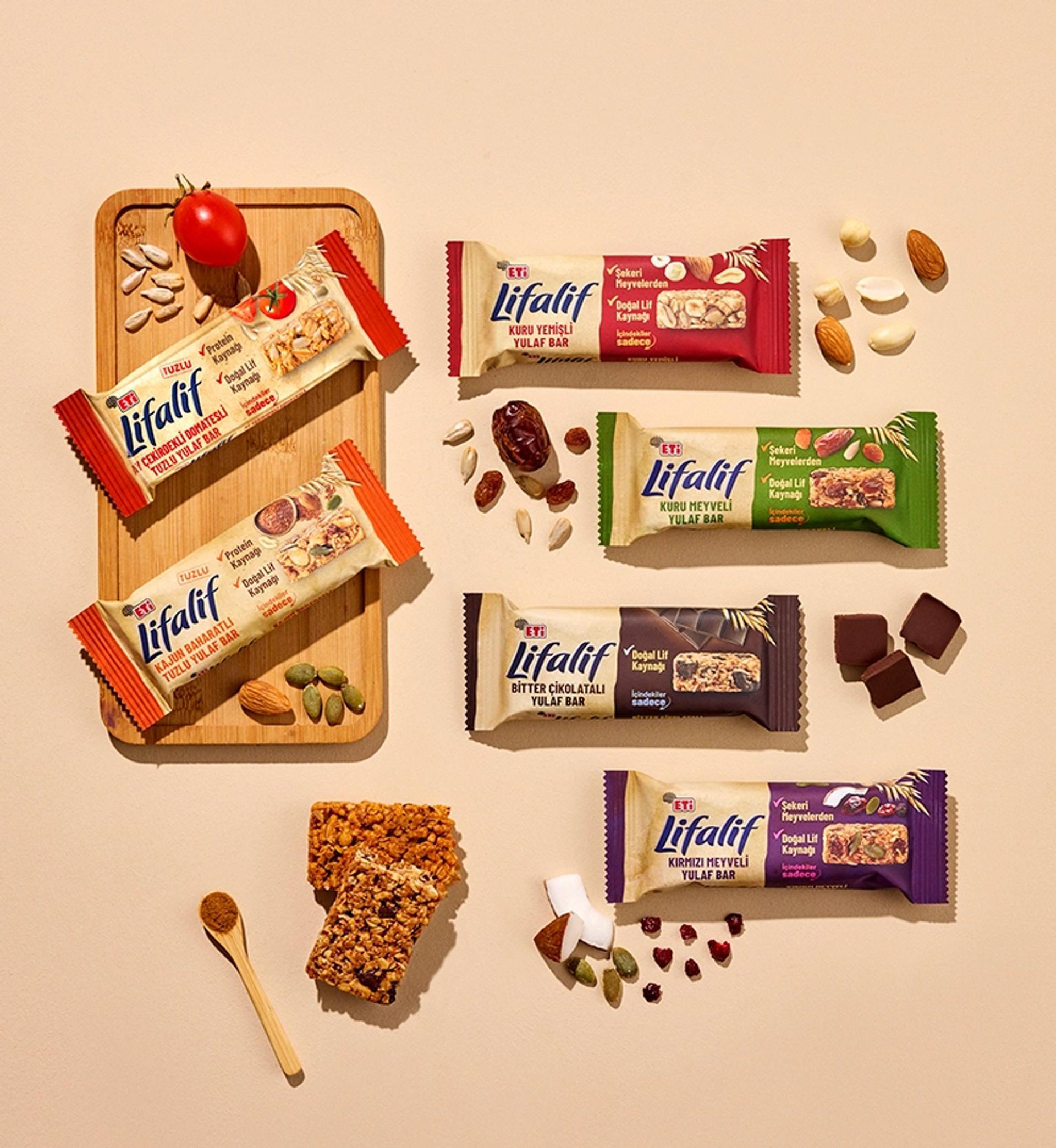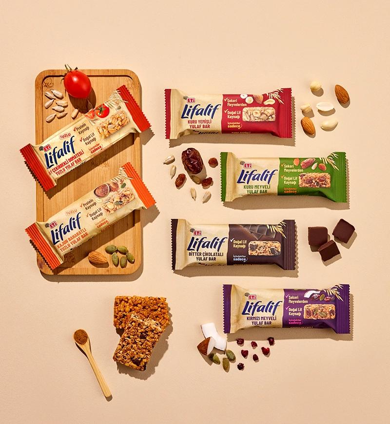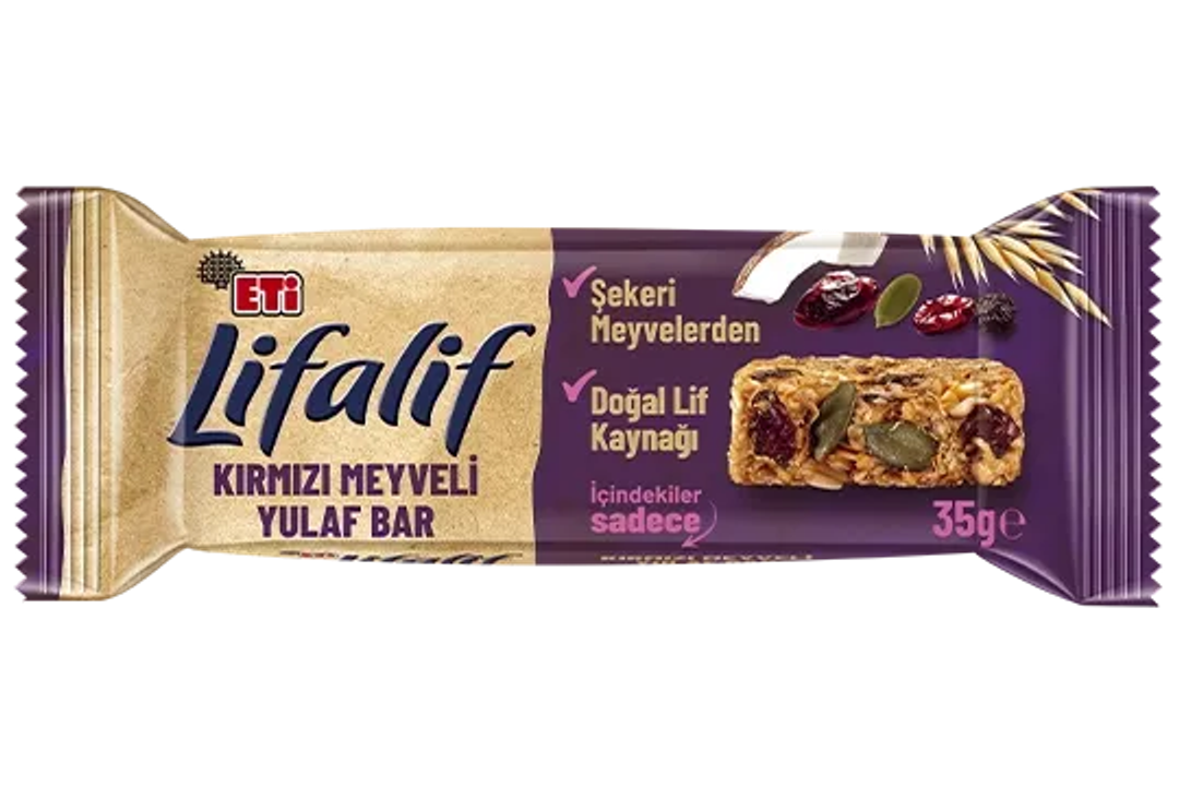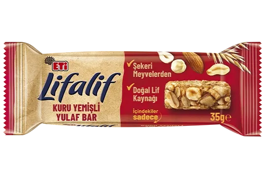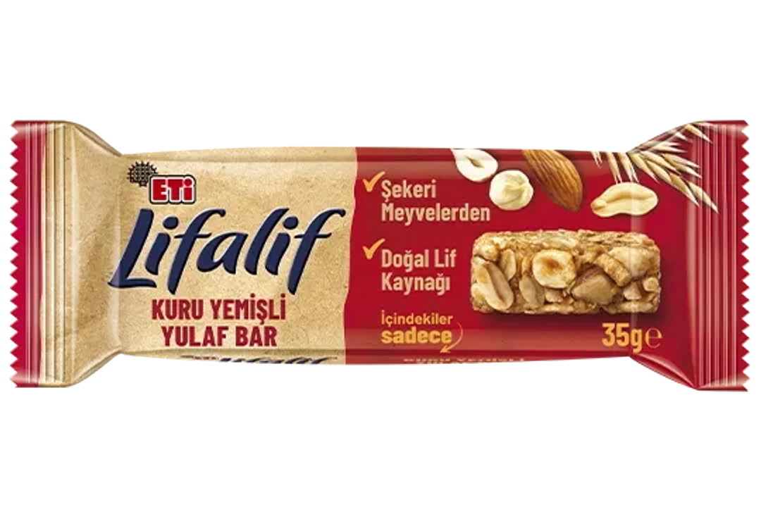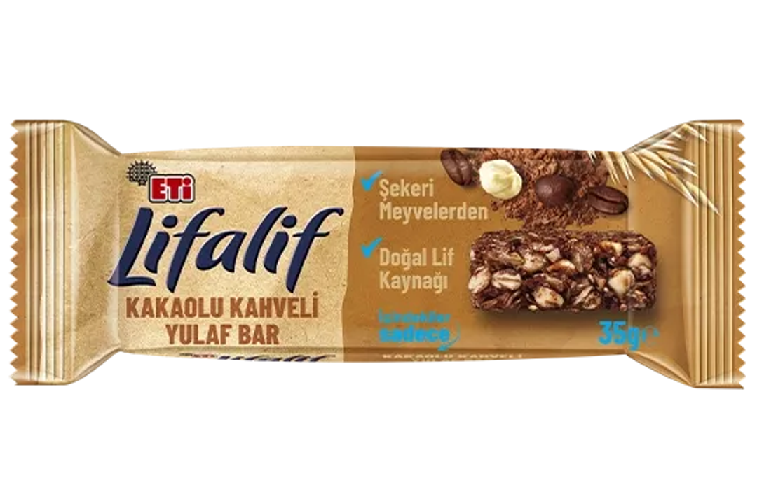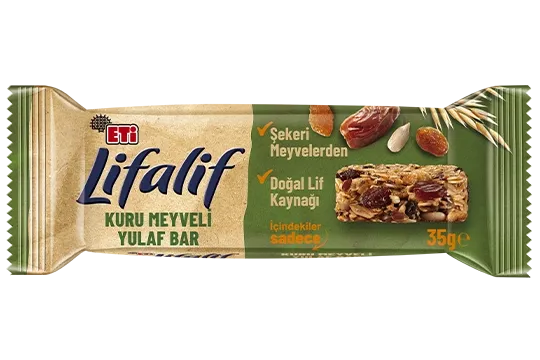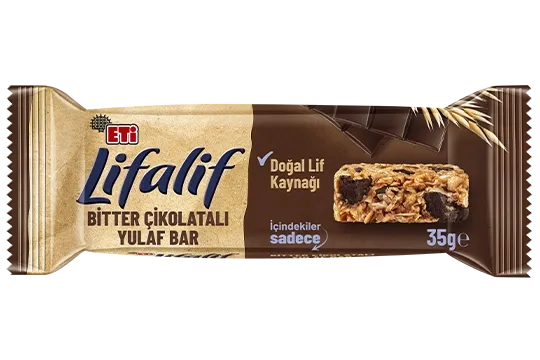 Natural source of fiber. Always with me – at home, school, or work! If you're looking for a good snack, take a closer look at the ingredients! ETi Lifalif Bitter Çikolatalı Yulaf Bar contains only grains, fruits, and the delightful taste of bitter chocolate. Whether at school, in the office, or on your travels... Wherever you go, the goodness of oats is with you through Lifalif Yulaf Bars!