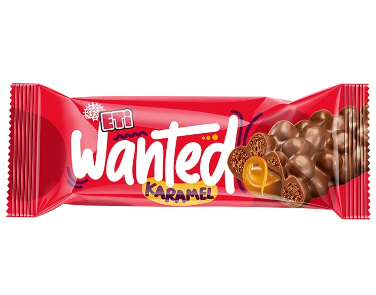 Corn and wheat cereal pops offer a caramel flavor and milk chocolate coating inside. The meeting of Wanted!'s milk chocolate coated crispy cereal and caramel flavor!
