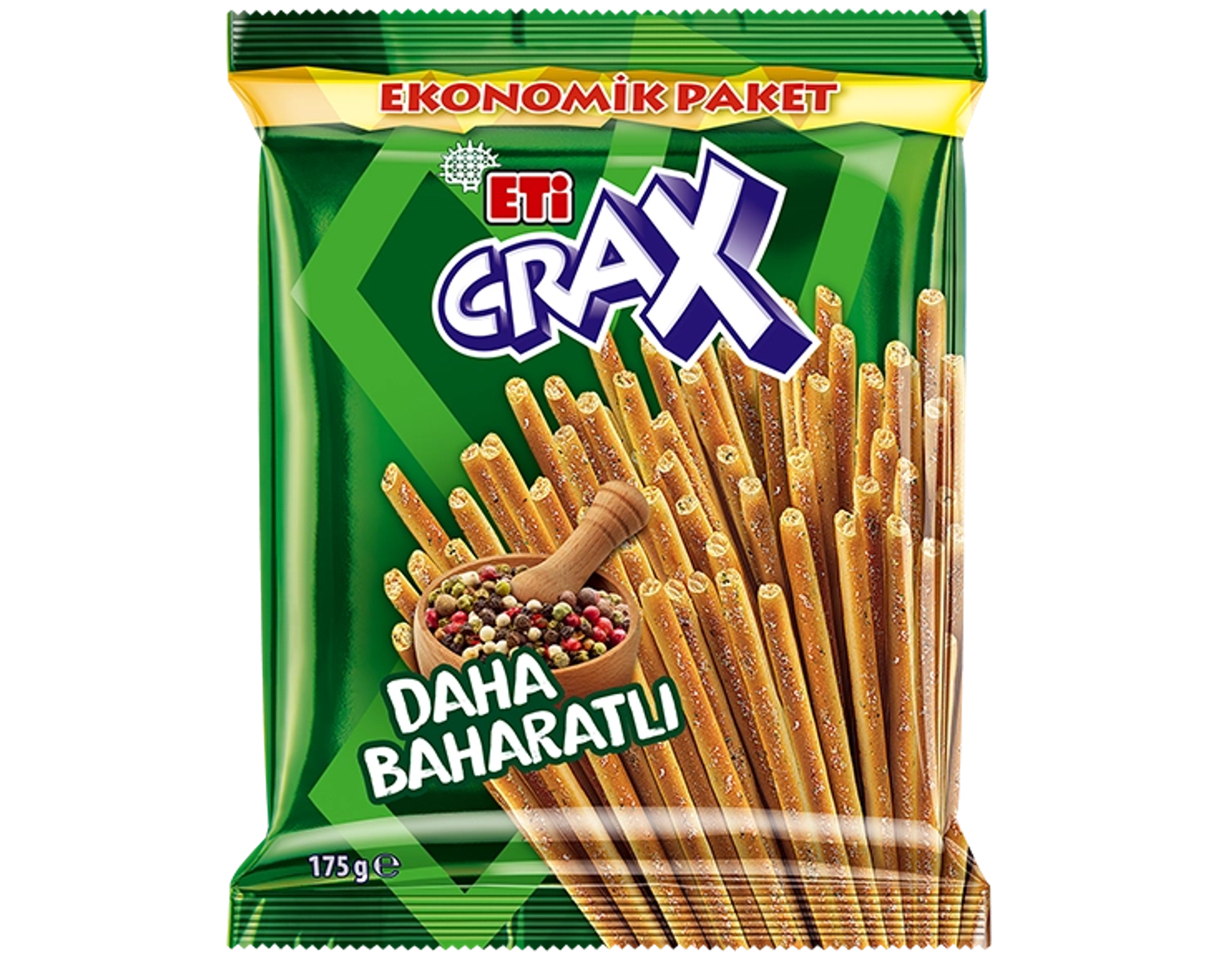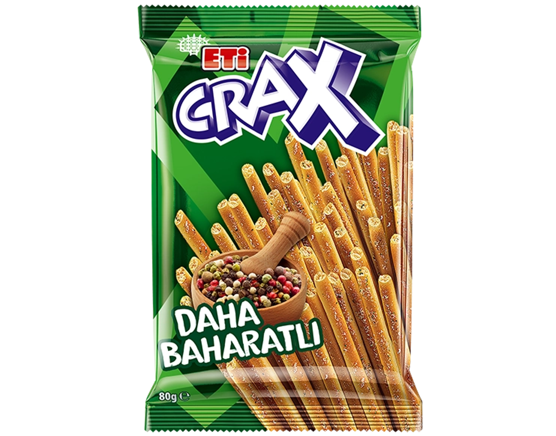 Yoğun aromalarla dolu dolu yeme deneyimi. Ağızda dağılan çıtır çıtır çubuk kraker ve yoğun aromalı lezeti ile ETi Crax Baharatlı! Hadi durma, Eğlence’yi Crax’la!