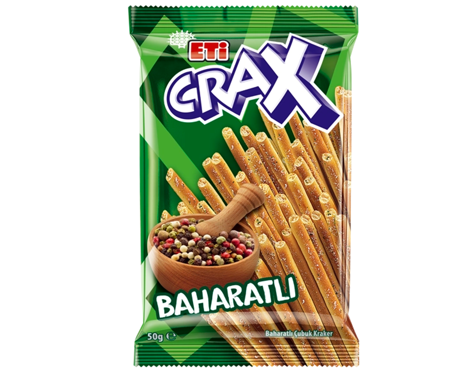 Eğlenceyi de lezzetti de patlatan ETİ Crax Patlayan Lezzet Acı Baharatlı! Üzerinde bulunan çıtır parçacıklar ve yoğun lezzeti sayesinde atıştırmak çok daha keyifli. Hadi durma, kafayı Crax'la!