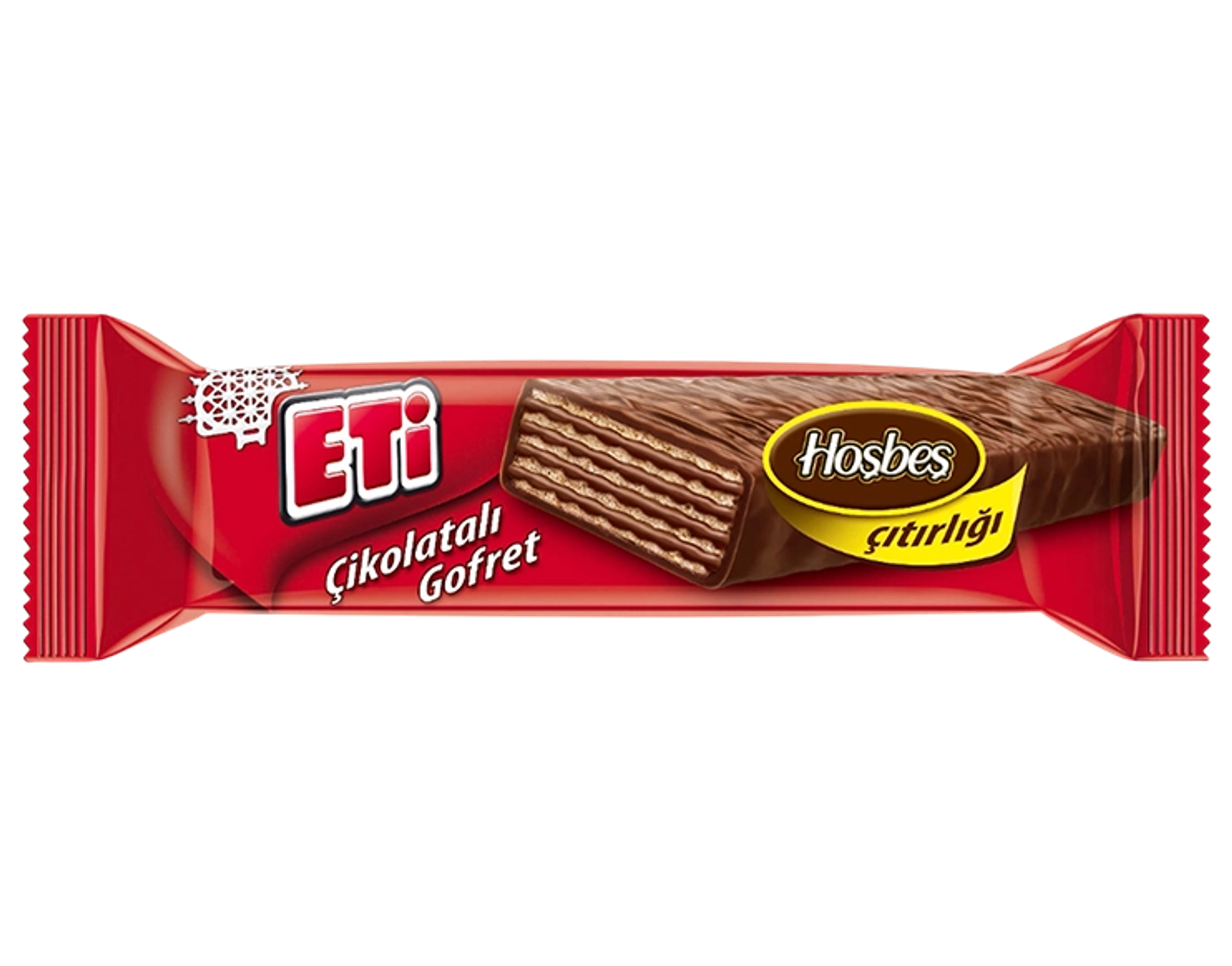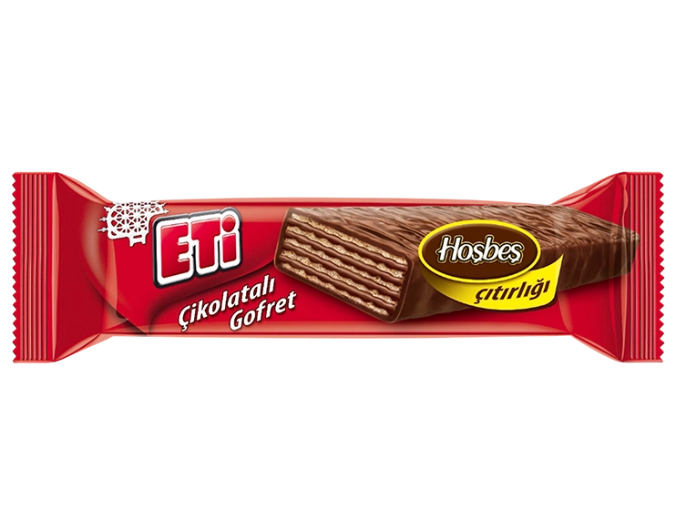 İçinde Hosbes’in incecik, çıtır çıtır gofret yaprakları, dışında nefis sütlü çikolata! Herkese var dedirten lezzet, ETi Çikolatalı Gofret.