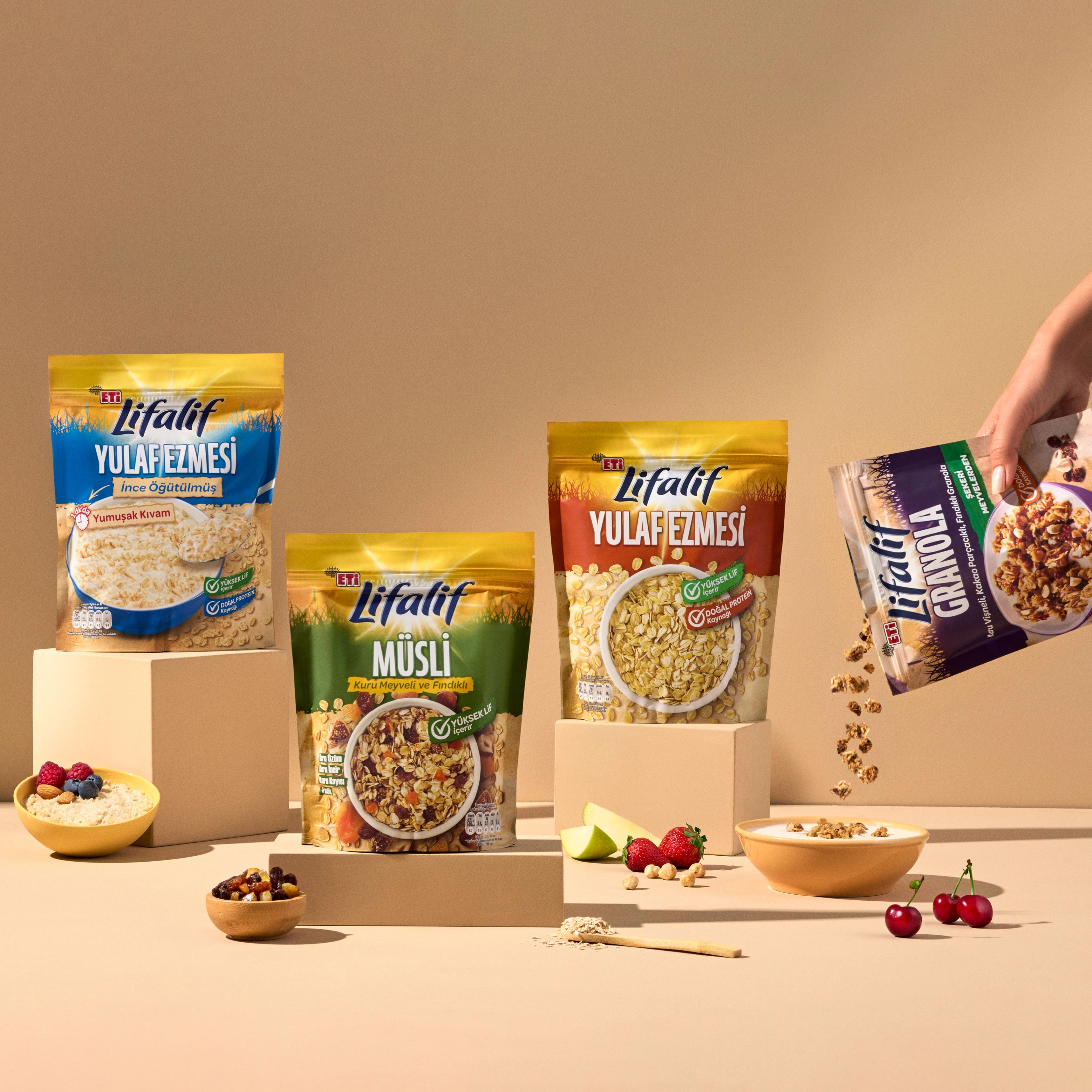Eti Lifalif Yulaf Ezmesi; yulafın doğallığını, lezzetini ve besleyiciliğini pratik bir şekilde sunan sağlam bir kahvaltı ve ara öğün alternatifidir. 1 kase(30g) ile günlük lif ihtiyacınızın %16’sını karşılar. Soğuk süt, yoğurt ile karıştırarak veya sütte haşlayarak kısa sürede hazırlayabilirsiniz.