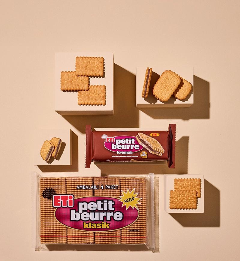 İlk petibör bisküvi ETi tarafından üretilmiştir. ETi Petit Beurre Bisküvi; taze süt kullanılarak üretilen, klasik lezzetleri sevenlerin vazgeçilmez bisküvisidir. Çay saatlerinizde ikram etmeniz için idealdir. Tatlı ve pasta yapımında sık sık kullanılır. Yufkalanarak işlenen özel hamuru, paketi açıldığında etrafı saran nefis kokusu ve kıtır kıtır yendiğinde ağızda bıraktığı gevrek lezzetiyle, ETi Petit Beurre alışkanlık yaratır.