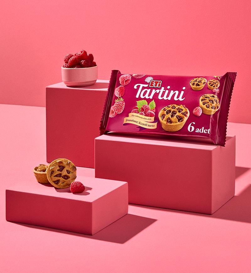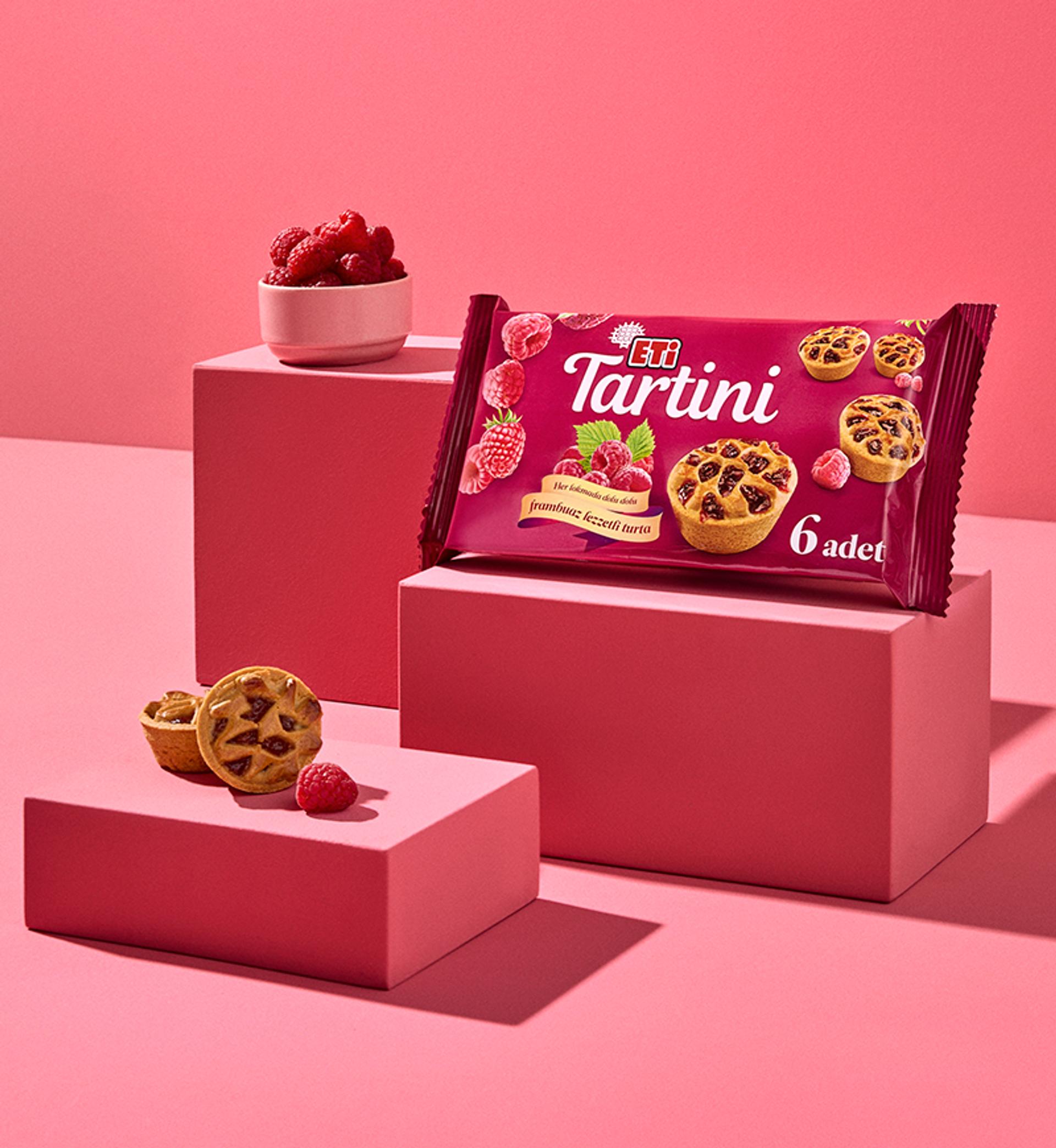 ETi Tartini’den alışkanlık yaratacak lezzet! Evde yapılmış turtalar kadar nefis, içi tadı damağınızda kalacak Frambuaz marmelatıyla dolu 9 minik turta, ETi Tartini paketlerinde! İşini bilen hanımların tercihi ETi Tartini, misafirlerinize zahmetsizce ikram etmek ya da sevdiklerinize paylaşmak için ideal ve şık bir ikramlık.